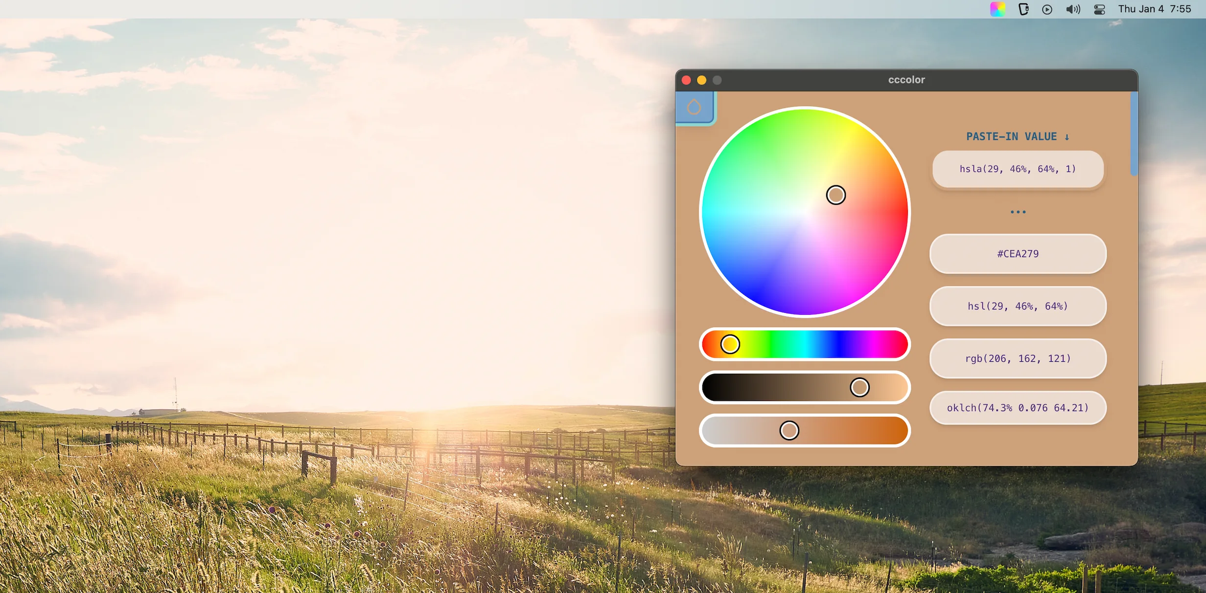 I wanted to make a simple color picker that would make it easy to pick colors, come up with nice color palettes and convert between different color formats.